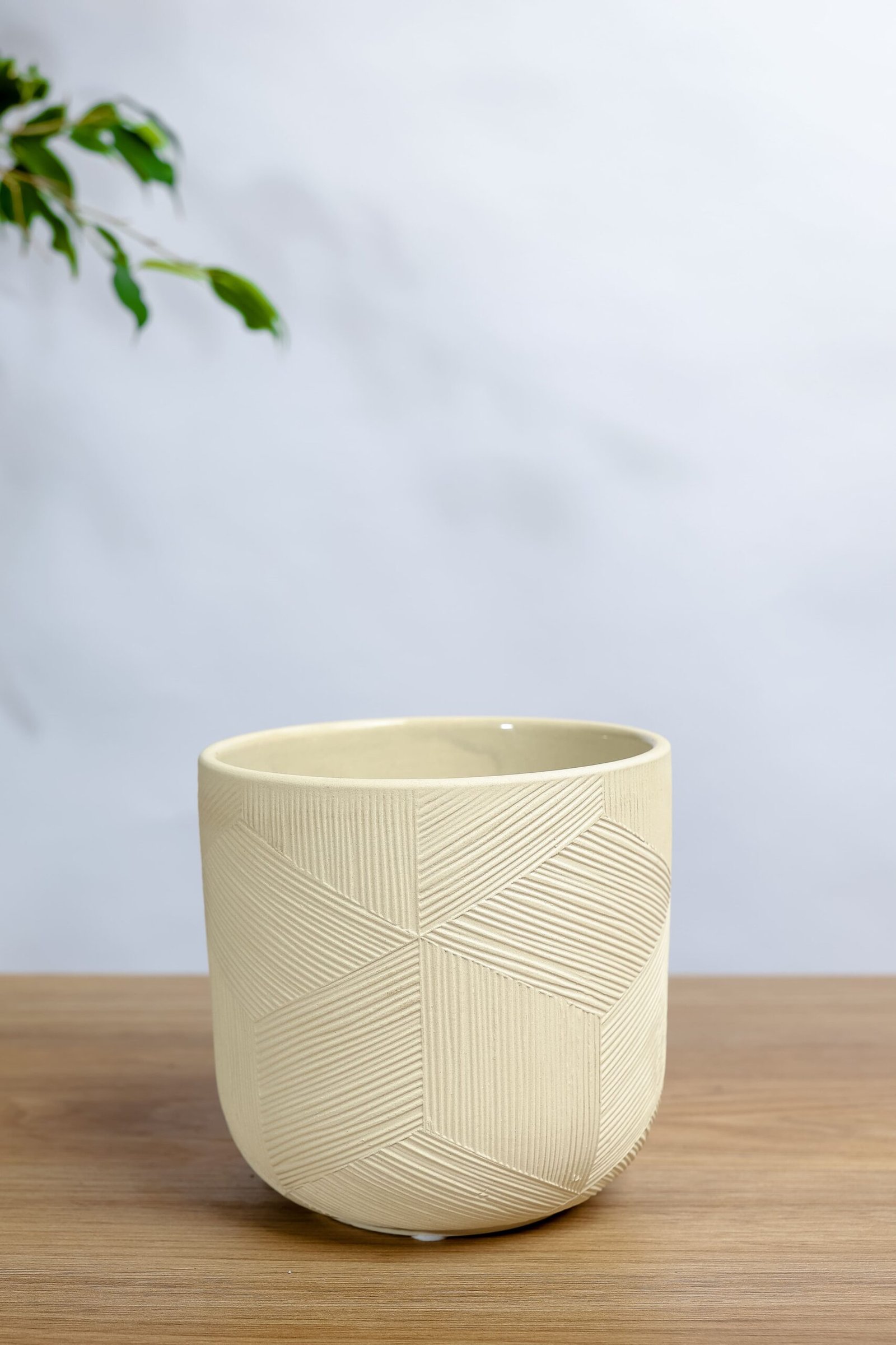 حوض رخامي بتصميم بسيط ولمسة ناعمة من الخطوط، يضفي أناقة هادئة على أي نبتة، مثالي للهدايا أو لتزيين المساحات الداخلية بلمسة راقية