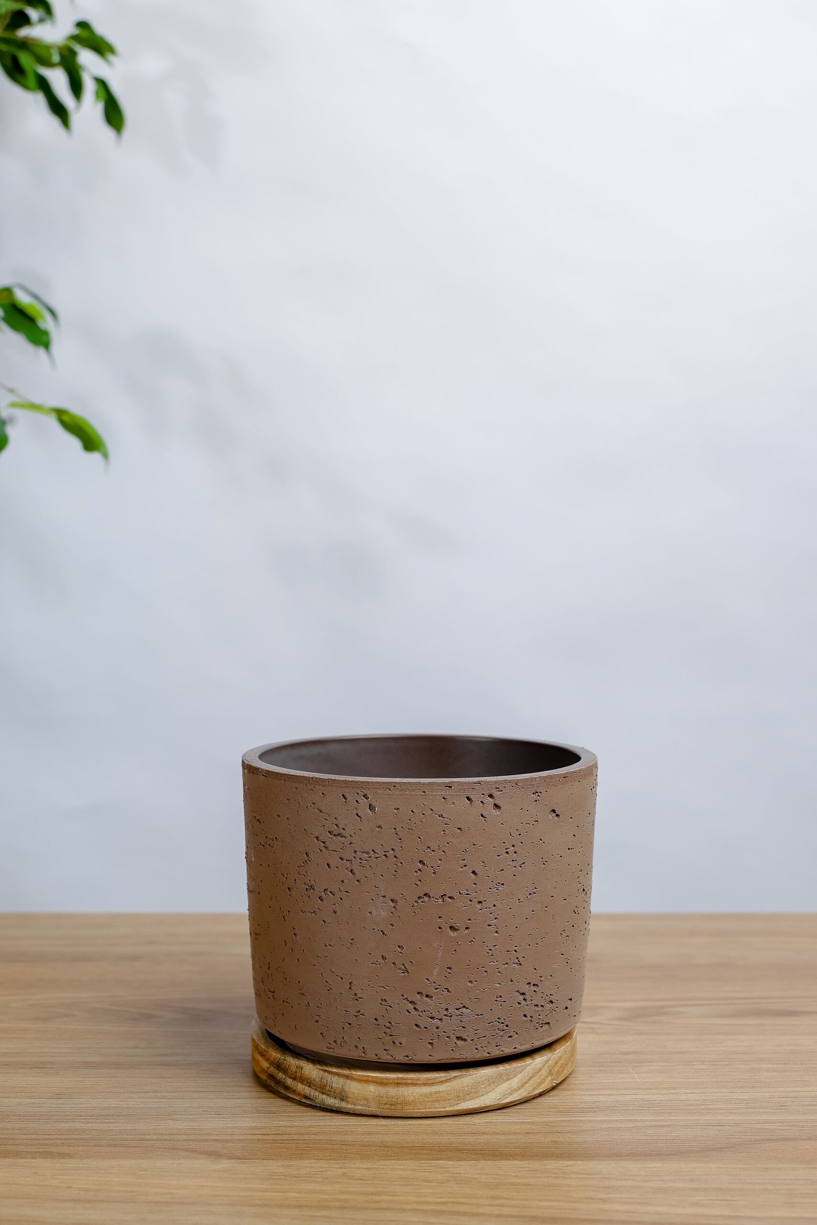 حوض نباتات رخام بتصميم بسيط وقاعدة خشبية أنيقة. مناسب للاستخدام داخل المنزل أو المكتب، ويضفي لمسة طبيعية وعصرية على أي مساحة.