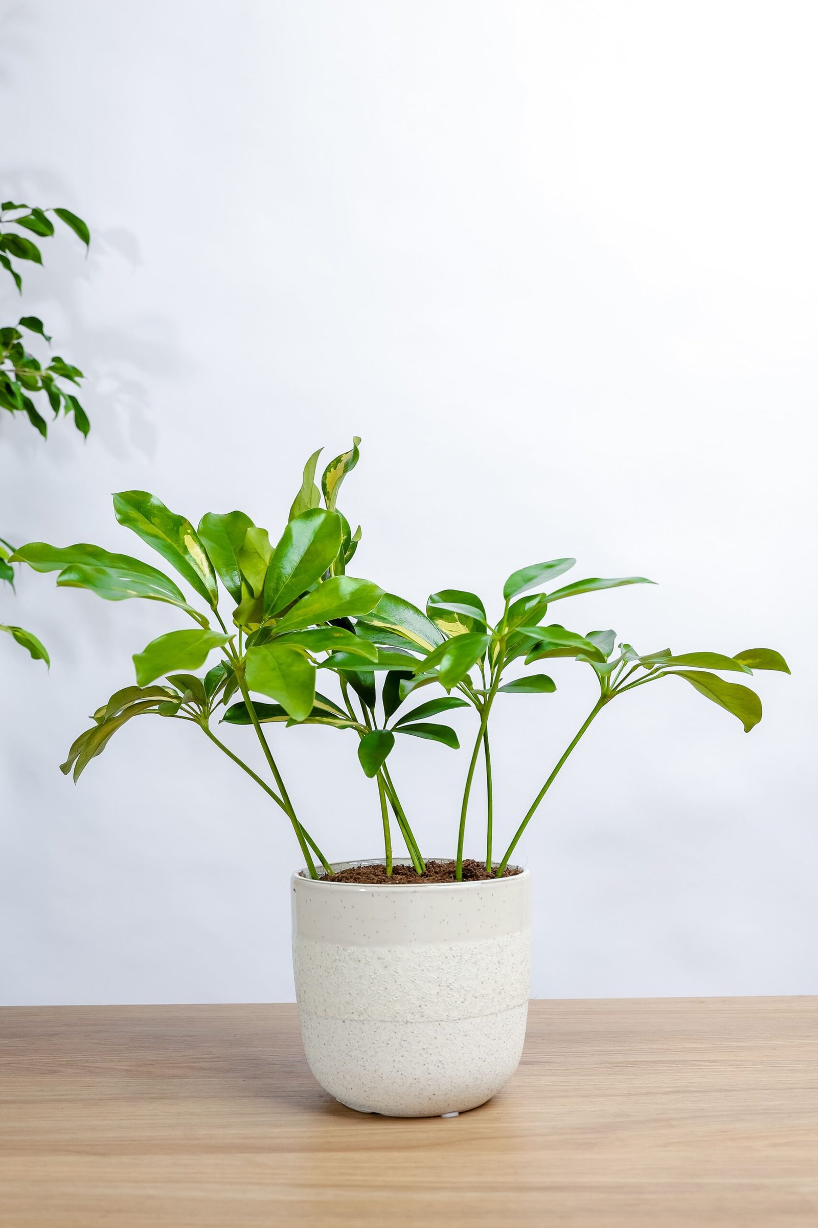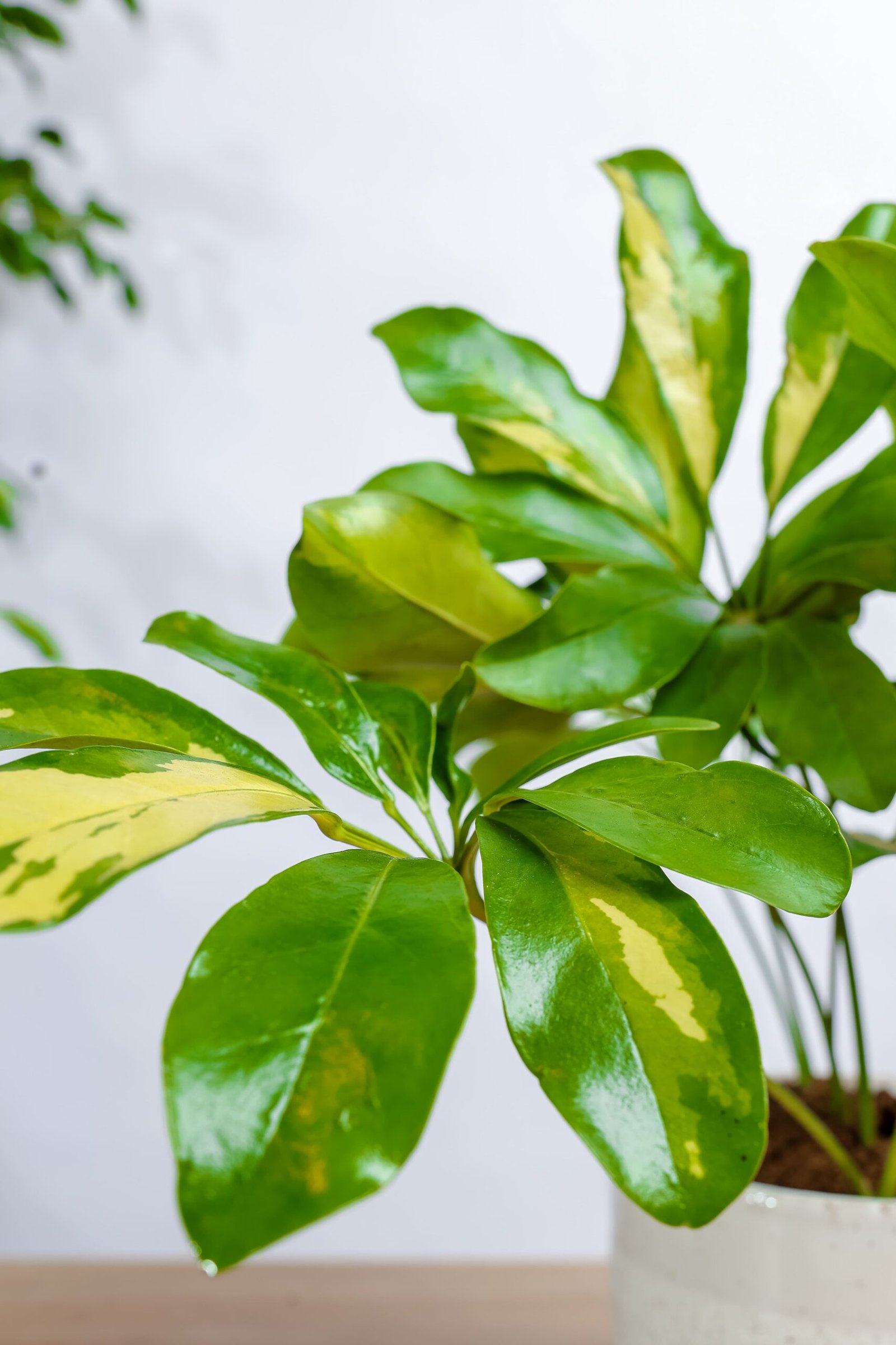 نبتة شفليرا ذات أوراق خضراء داكنة ولامعة و تعتبر من النباتات السهلة في العناية والجميلة المظهر، يمكن وضعها في المنازل أو بيئات العمل المختلفة.