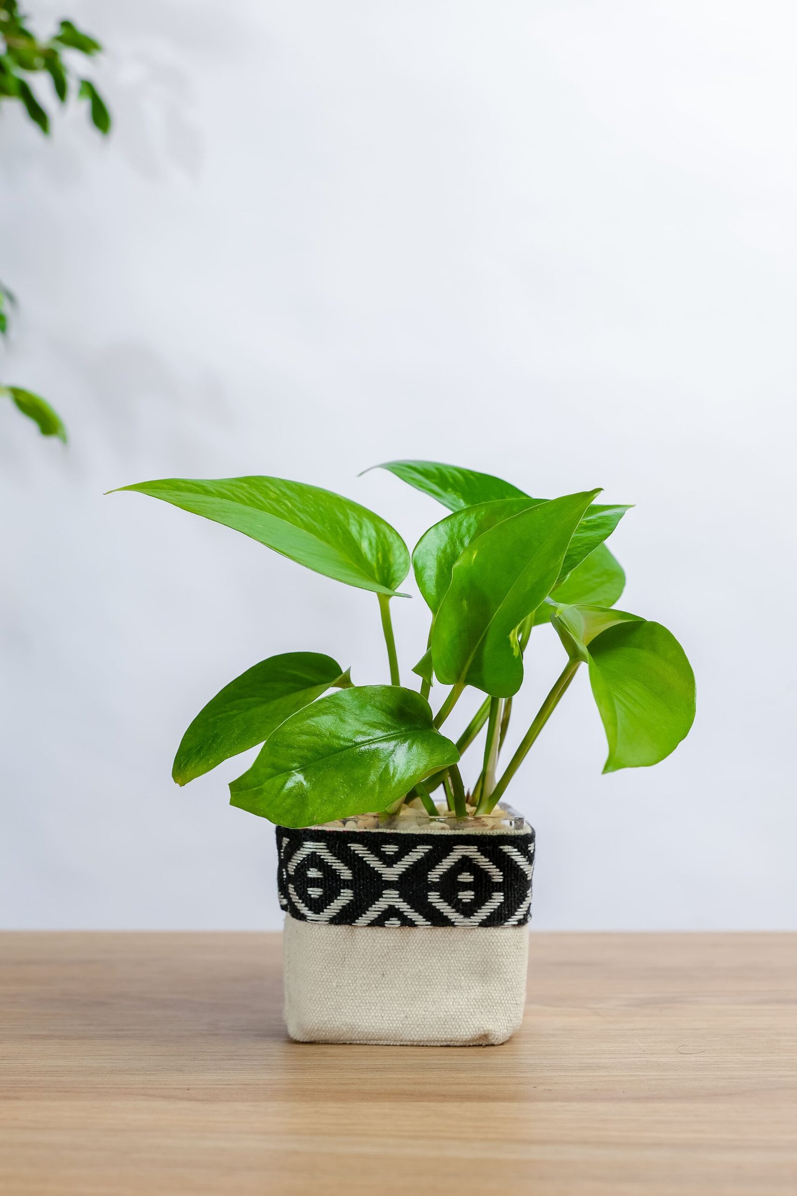 نبتة بوتس في حوض زجاجي مربع مغلف بشكل انيق