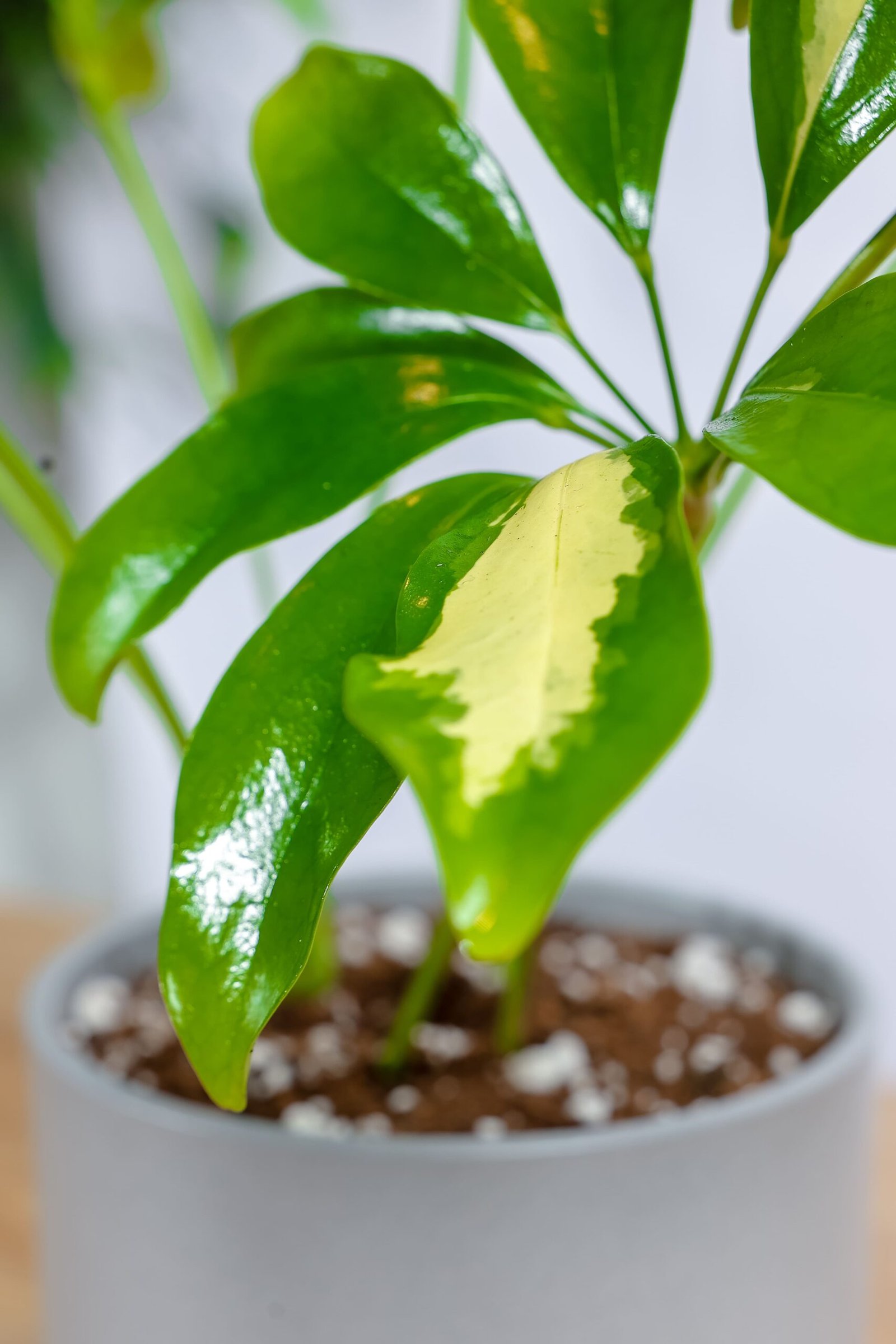 نبتة شفليرا ذات أوراق خضراء داكنة ولامعة و تعتبر من النباتات السهلة في العناية والجميلة المظهر، يمكن وضعها في المنازل أو بيئات العمل المختلفة.