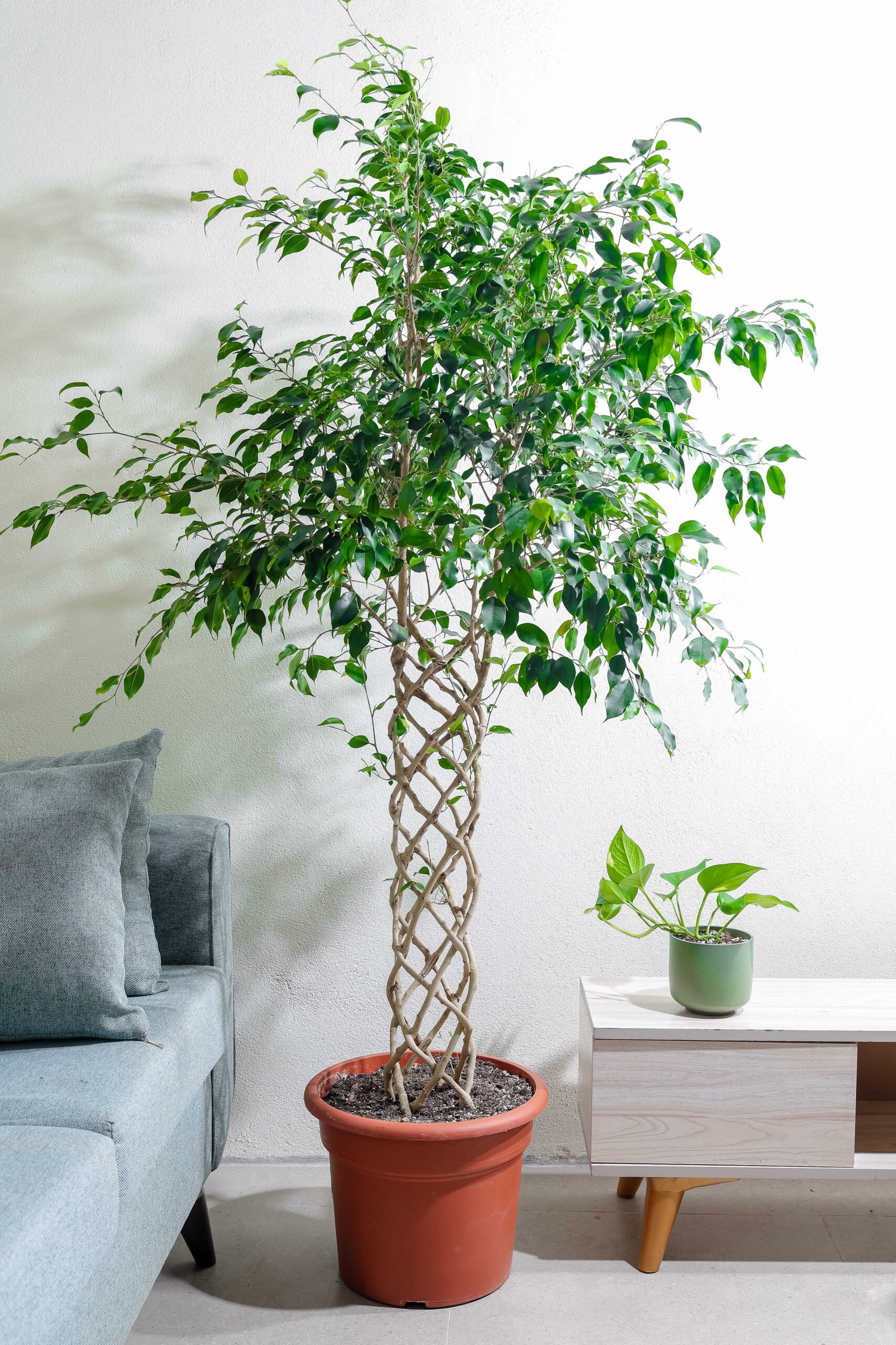تخيل مدخل بيتك وقد زيّنته شجرة الفيكس بنجامينا بارتفاعها البارز وأوراقها المتدرجة. بجانب مرآة طويلة أو إضاءة جانبية دافئة، تتحول النبتة إلى عنصر ديكوري حي يمنح المكان حضورًا خاصًا، وكأنك أضفت لوحة طبيعية تنبض بالحياة في قلب منزلك.